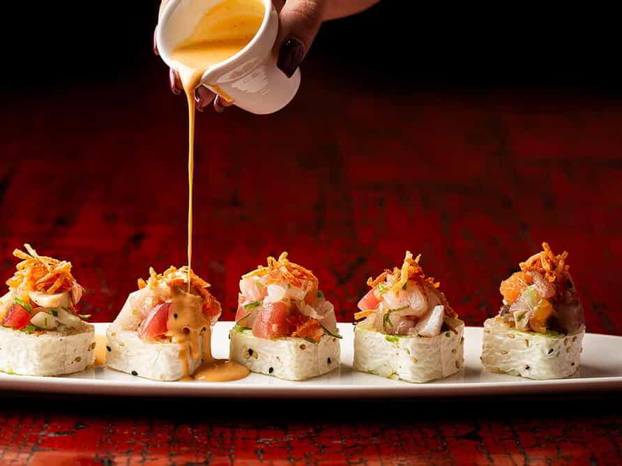 Kumi Restaurant + Lounge is a modern Japanese restaurant with a Korean American twist, located at the Mandalay Bay Hotel & Casino in Las Vegas. With its innovative menu featuring sustainably sourced ingredients, guests can enjoy a variety of shared plates, seasonal fish selections, and bold dishes with Korean flavors. Kumi's dining experience is complemented by a fine selection of wines, Japanese whiskeys, sakes, and specialty cocktails, all served in a chic and upscale atmosphere with natural woods, cherry blossom hues, and hammered steel accents.